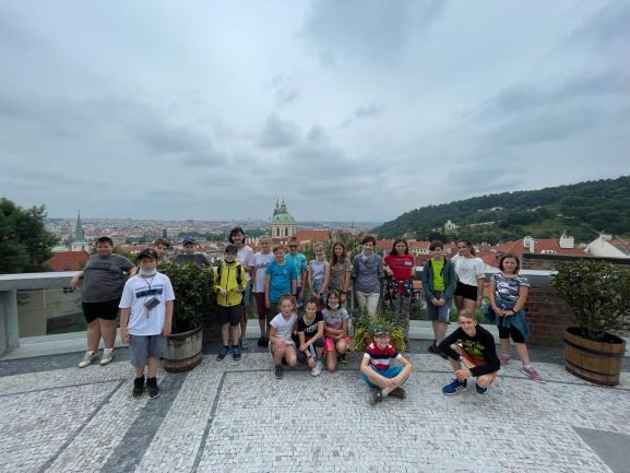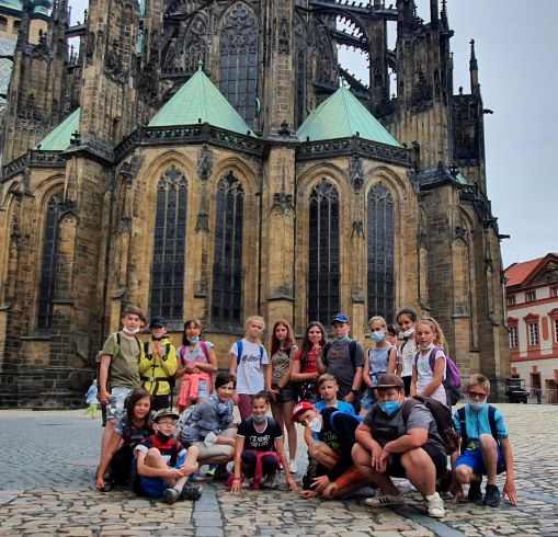 Ve středu 23. června se třída 5.B vydala na dlouho očekávaný výlet do Prahy. Navštívili jsme Pražský hrad, kde jsme nejdříve prošli liduprázdnou Zlatou uličku. Moc se nám líbila stejně jako kopie korunovačních klenotů a defenestrační okno ve Starém královském paláci. Návštěvu Pražského hradu jsme zakončili prohlídkou Chrámu sv. Víta. Viděli jsme i střídání stráží. Po krátké spršce, která nás donutila vytáhnout pláštěnky, jsme se vydali Nerudovou ulicí přes Malostranské náměstí na Karlův most. Na Staroměstském náměstí jsme si prohlédli radnici a zjistili, že orloj je ve skutečnosti menší, než jsme si mysleli. Asi nejvíc se nám líbilo v Muzeu smyslů.