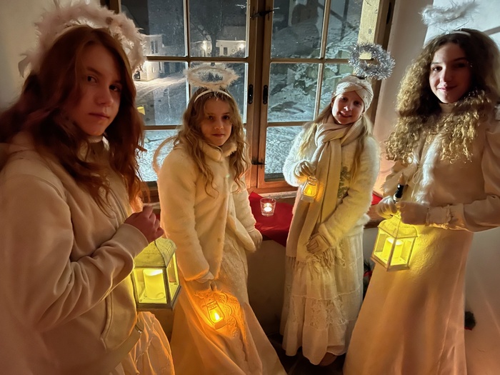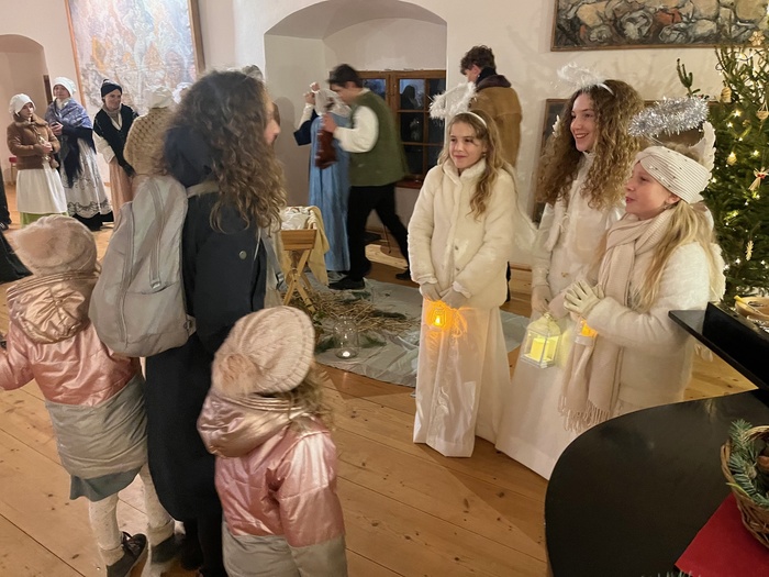 Prosinec byl pro vybrané sólistky z pěveckého sboru Jablůňka velkou výzvou. Emička a Anička Prokopovy, Viktorka Gregorová a Terezka Baňasová totiž dostaly angažmá na velkolepých komentovaných prohlídkách zámku Plumlov. Paní učitelka Hana Pořízková, která kromě hodin dějepisu a českého jazyka na naší škole, ještě provází na zámku, nás oslovila s nabídkou hudebního vystoupení ve 13 herecky ztvárněných prohlídkách pro veřejnost. Sboristé už v Jablůňce prožili ledacos – natáčení do TV, ČRo, videoklipy na YouTube, CD, soutěže, BROLN…, ale toto bylo něco netradičního. V kostýmech andělů, při svitu lucerniček a svíček určické zpěvačky dotvářely svými latinskými a českými zpěvy v komnatách zámku atmosféru pro několik set návštěvníků. Myslím si, že na tyto okamžiky nikdo ze zúčastněných dlouho nezapomene…