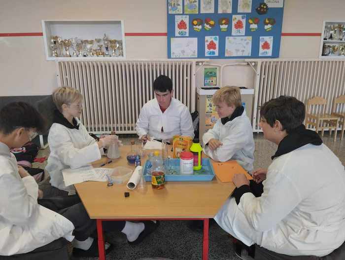 Ve čtvrtek 26. 9. 2024 proběhl na naší škole přírodovědný badatelský projekt s názvem Není vejce jako vejce. Žáci 9. třídy se proměnili v učitele a prostřednictvím různých aktivit se snažili zábavnou a interaktivní formou přiblížit osmákům chemii, praktickou formou vysvětlit některé jevy z běžného života a ukázat souvislost chemie s ostatními předměty. Žáky čekalo 5 stanovišť.