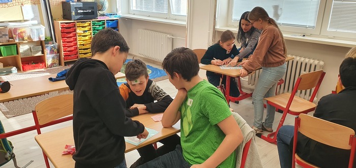 Recyklace a třídění odpadů jsou pojmy, se kterými si páťáci docela dobře rozumějí. V programu, který připravilo Ekocentrum Iris, roztřídili do správných nádob téměř všechen odpad. Společně si uvědomili důležitost třídění pro naši další existenci. V následující strategické hře Ostrov odpadů plnili různě obtížné úkoly k tomuto tématu, ale zároveň museli rozhodovat o promyšleném umísťování získaných žetonů, kterými mohli eliminovat zisk dalších družstev. Hra byla super.