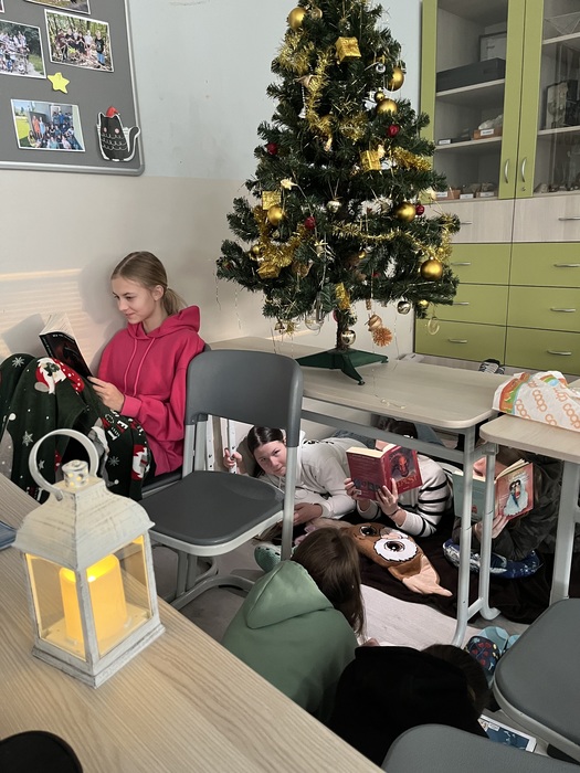 Čtenářskou dílnu, nejoblíbenější hodinu literatury, si užili žáci 7. ročníku tentokrát ve vánočním duchu. Jejich třída se proměnila ve čtenářská hnízda a pelíšky s teplou dekou a polštářky. Z domu si donesli i čaj v termoskách, cukroví, každý si našel to své místečko a poté se začetl do své oblíbené knížky. Pohodovou literární atmosféru zakončilo až zvonění. Sedmáci si odnesli kromě pěkných čtenářských zážitků jedničky a certifikáty, které našli pod stromečkem.